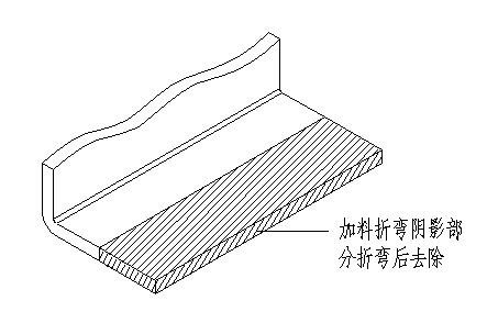 5.L折的特殊加工:<L<V/2>采用加料折彎,折彎后把多余料去除(二次加工)如下圖所示: